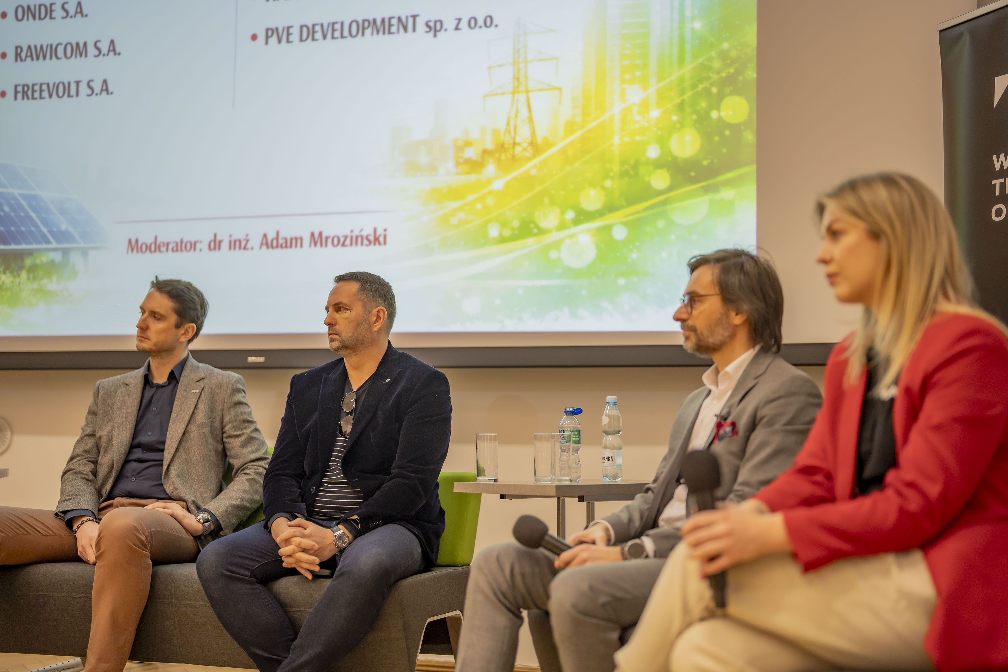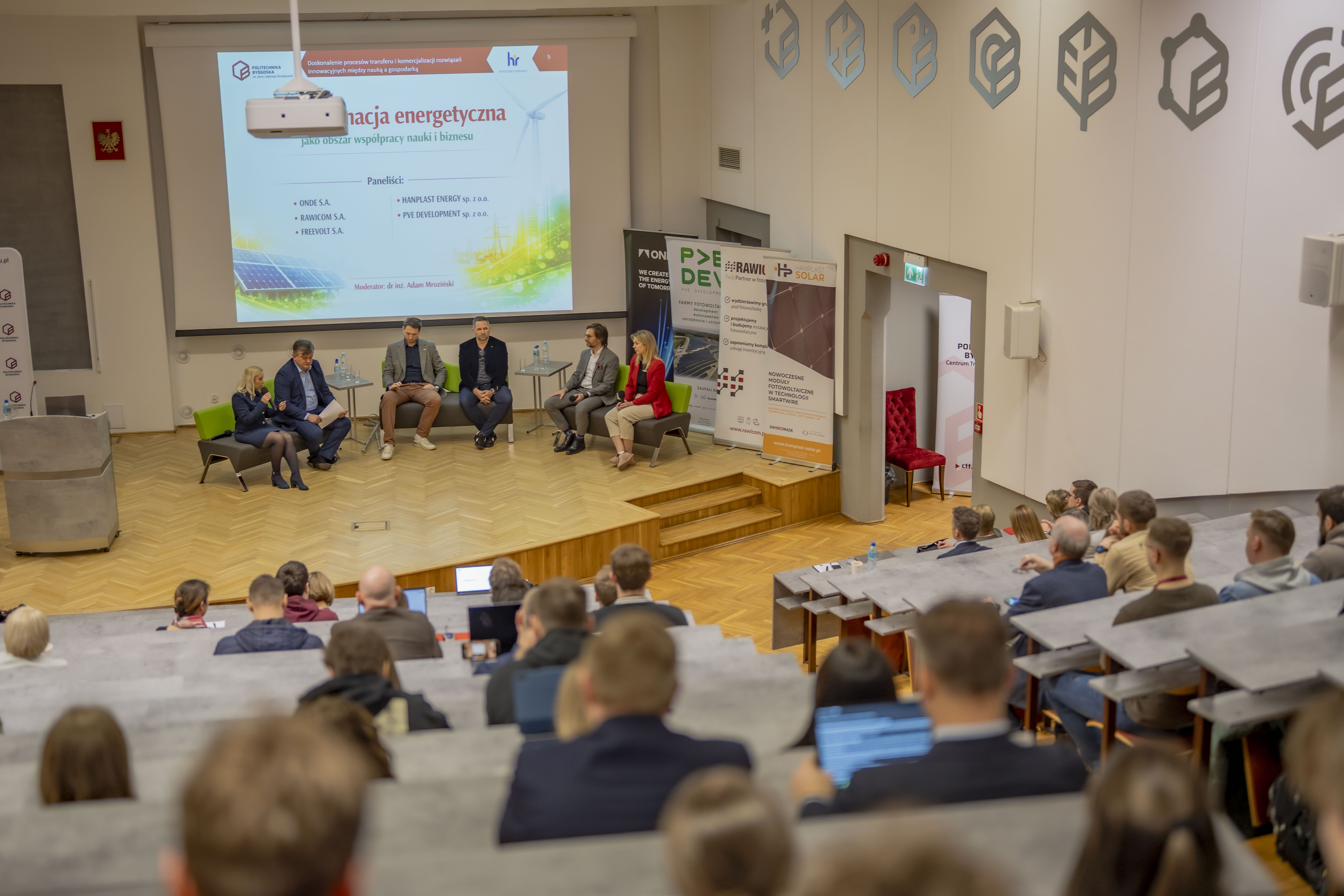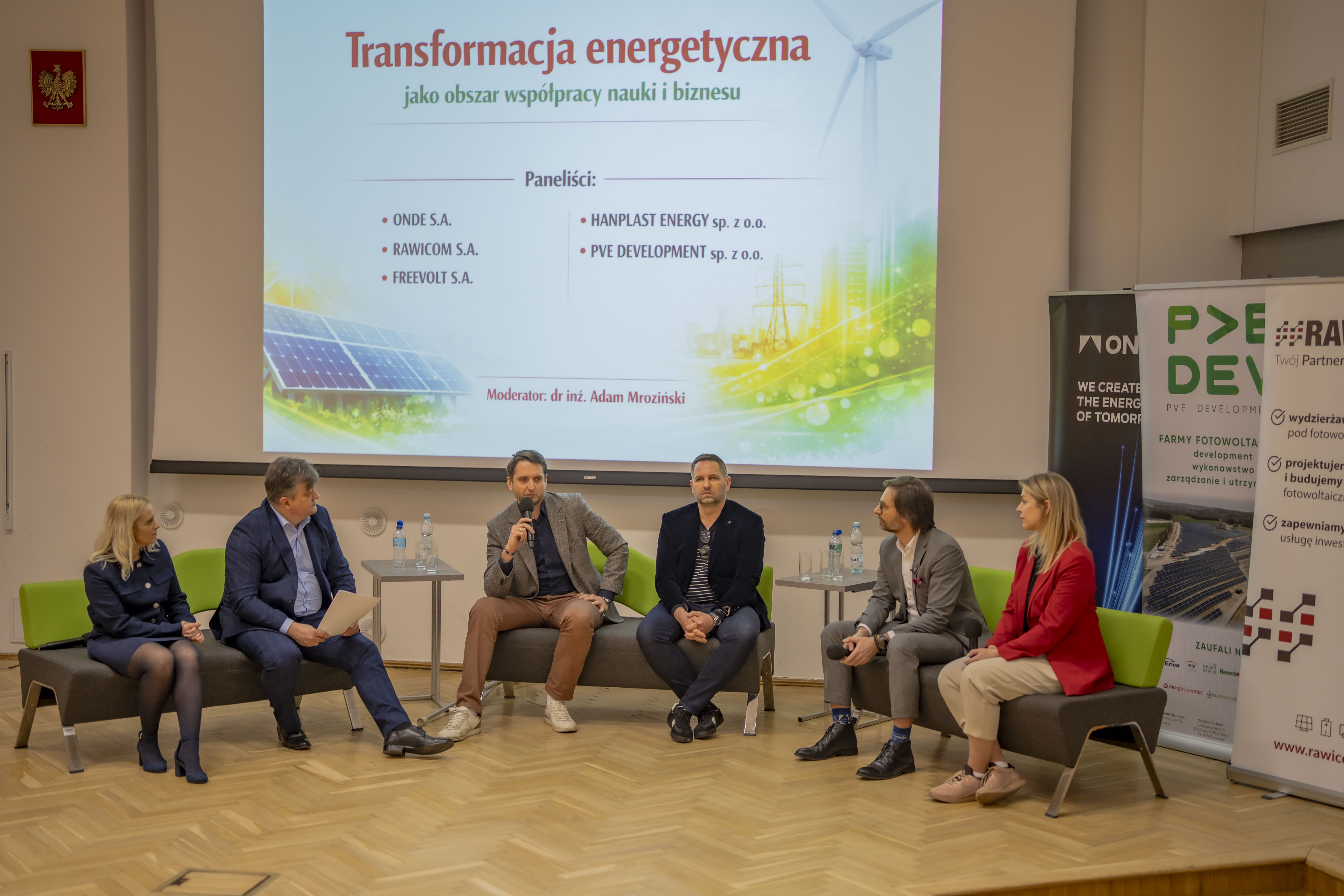 W ramach panelu dyskusyjnego omówiono rolę transformacji energetycznej jako kluczowego obszaru współpracy nauki i przedsiębiorstw. W debacie udział wzięli przedstawiciele firm z sektora OZE współpracujących z Politechniką Bydgoską. Moderatorem panelu był dr inż. Adam Mroziński.