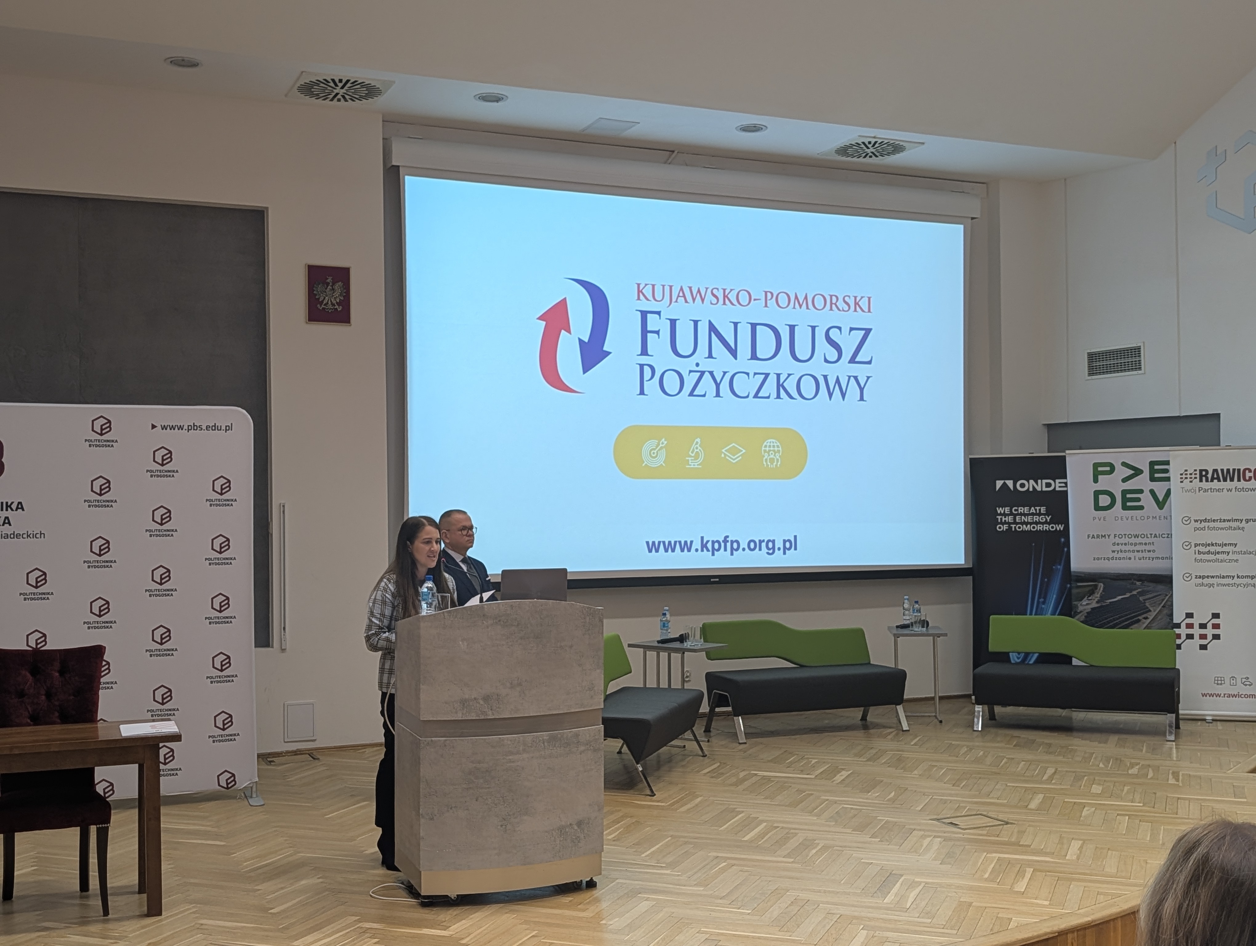 Drugi blok poświęcony był możliwościom finansowania działań badawczo-rozwojowych. Przedstawiciele Kujawsko-Pomorskiego Funduszu Pożyczkowego zaprezentowali m.in. Fundusz Badań i Wdrożeń 3.0 oraz instrumenty zwrotne wspierające projekty z zakresu odnawialnych źródeł energii i termomodernizacji.
